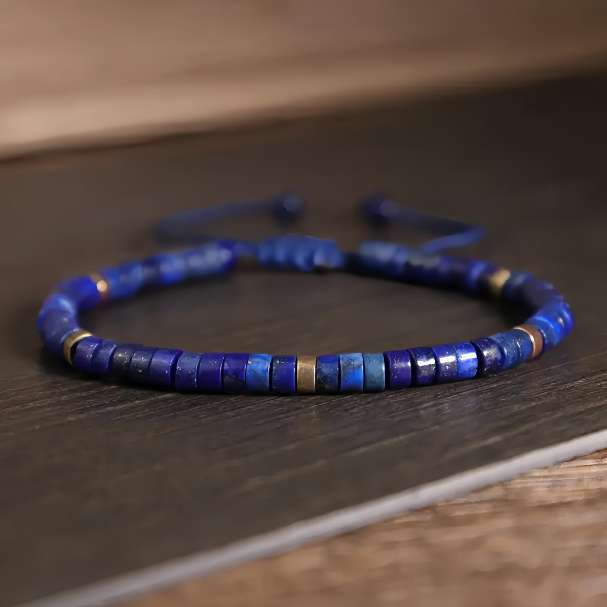 Blue Friendship Bracelet Blue Lapis Lazuli Stone Bracelet Healing Crystal Barrel Gemstone Dainty Bracelet Handmade Minimalist Style Gift for her