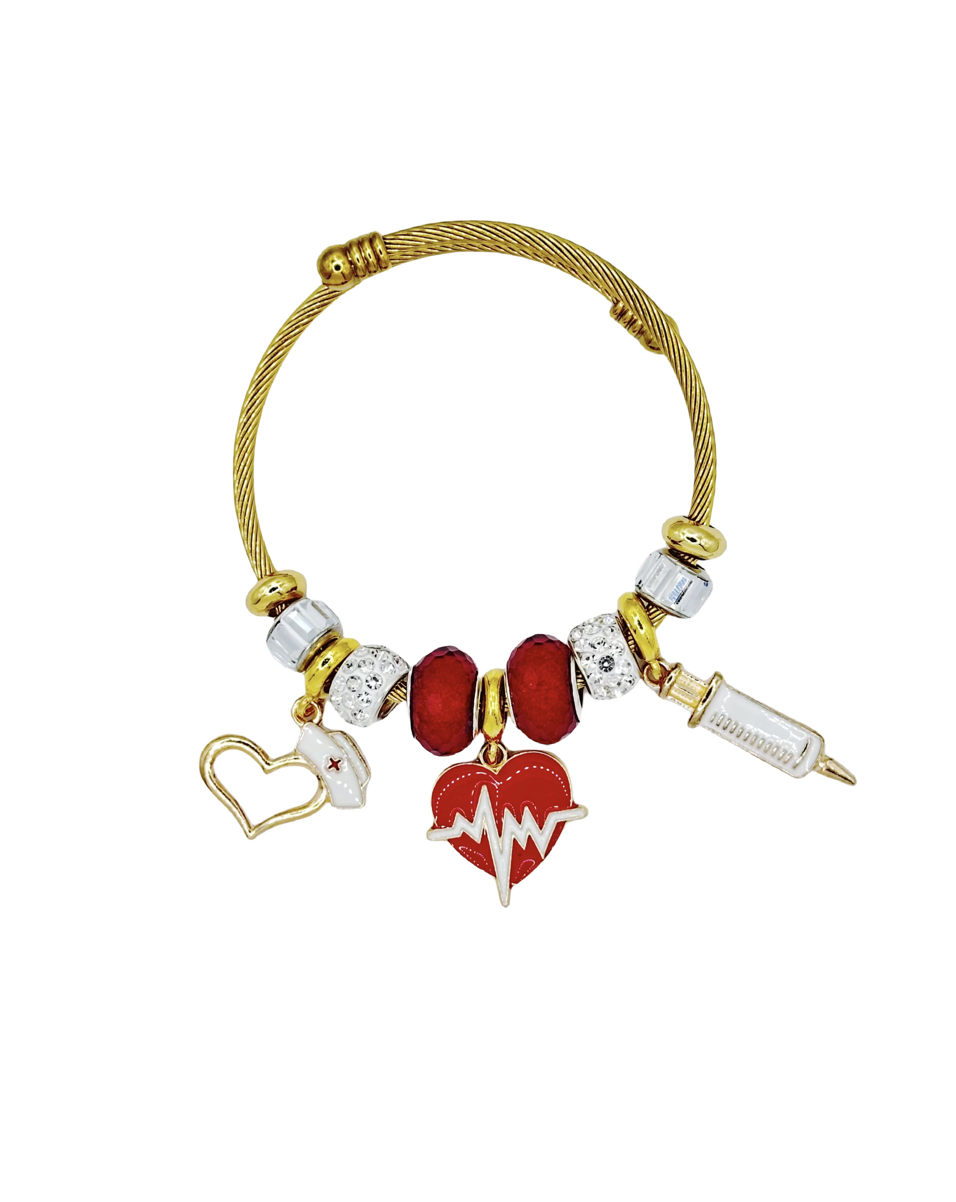 Career theme Nurse/Teacher Element Gold Plating Adjustable Bracelet Worry Stone